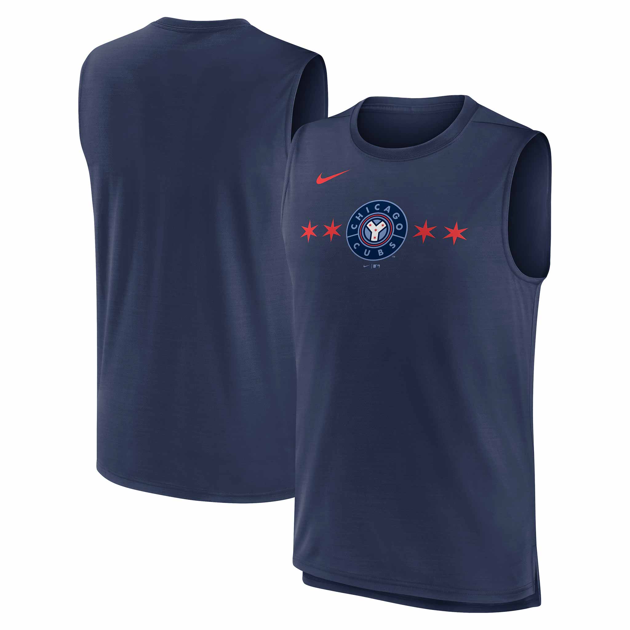 Stay cool and dry all summer in this Chicago Cubs City Connect Performance Sleeveless T-Shirt from Nike! This muscle tank top is all navy blue with a Cubs City Connect graphic printed across the chest. It is made from a lightweight, breathable polyester material that is designed to keep you cool and dry all day long.