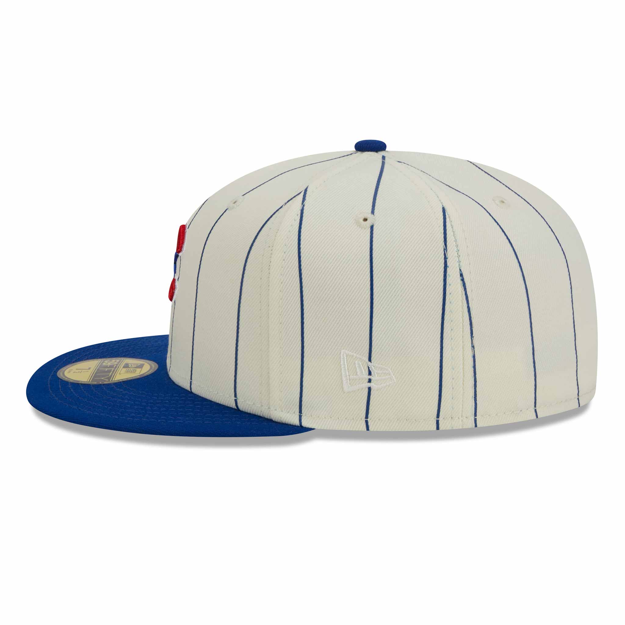 Support your team and your city in this Chicago Cubs City Connect Retro 59FIFTY Fitted Cap from New Era! This fitted cap has a structured fit throughout, with high, structured crown and a flat visor. It is cream with royal blue pinstripes and a royal blue visor and features a Cubs City Connect star logo embroidered on the front.