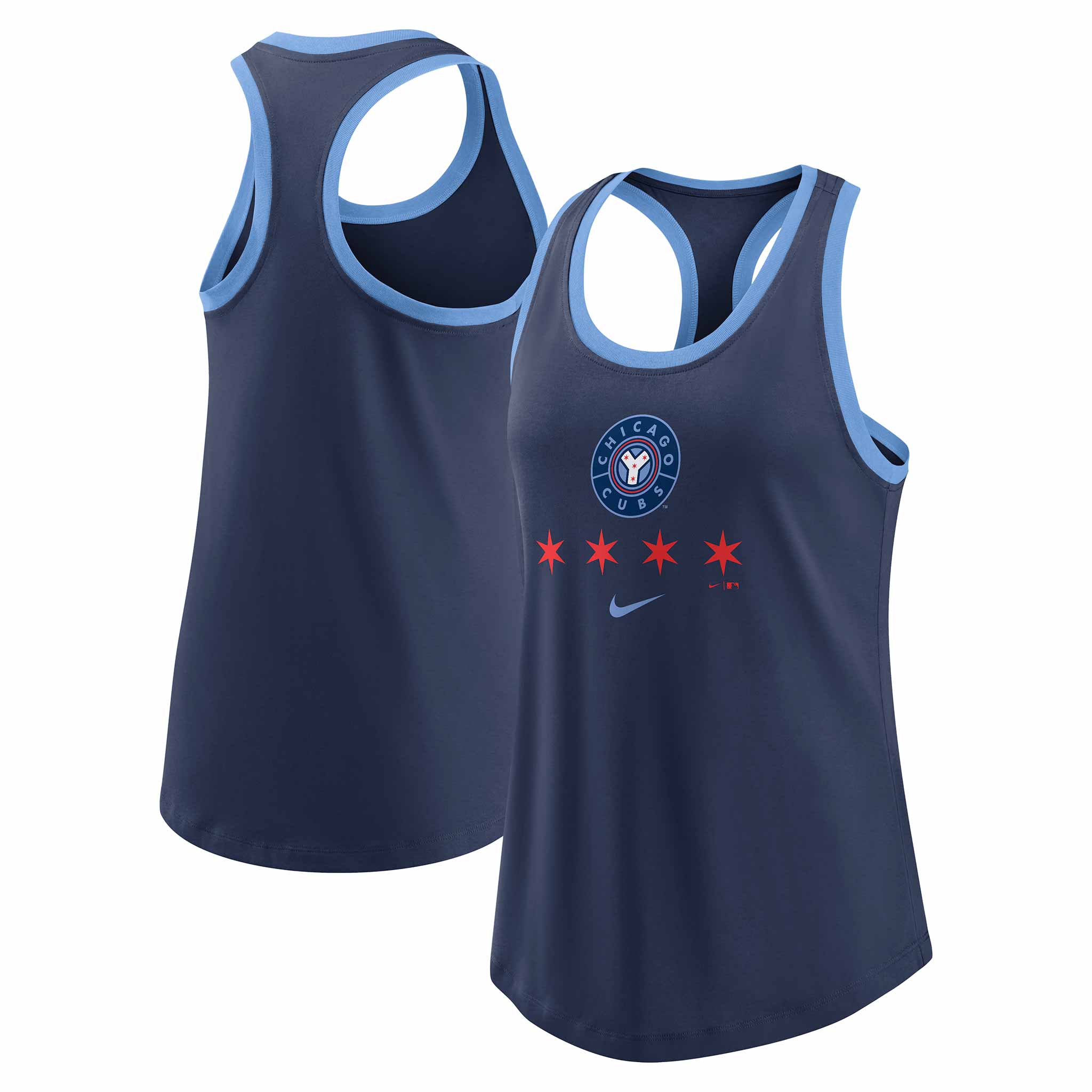 Ladies, gear up for baseball season in this Chicago Cubs Women's Nike City Connect Tank Top from Nike! This tank top is navy blue with baby blue trim throughout, and features a Cubs City Connect graphic printed across the chest. It is made from a soft tri-blend material, and has a split bottom hem and a tagless neckline for extra comfort.